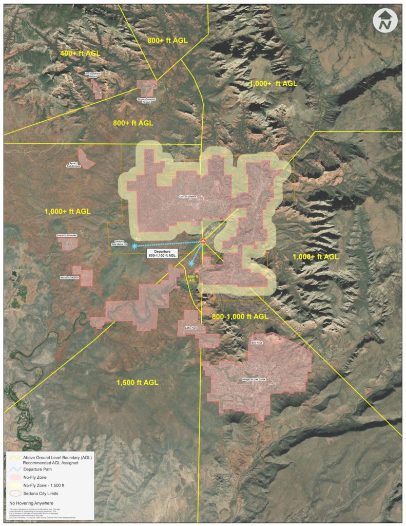 After five years of diligent work, an agreement has been reached to reduce helicopter noise in Sedona. Led by Mike Yarbrough, KSB was instrumental in reaching a voluntary agreement with the two local tour operators, Guidance Air and Sedona Air Tours. The agreement establishes “No-Fly Zones” and minimum altitudes. Both of these restrictions will result in less noise pollution for both residents and visitors. You can click on the map above to pull up a full depiction of the agreement.